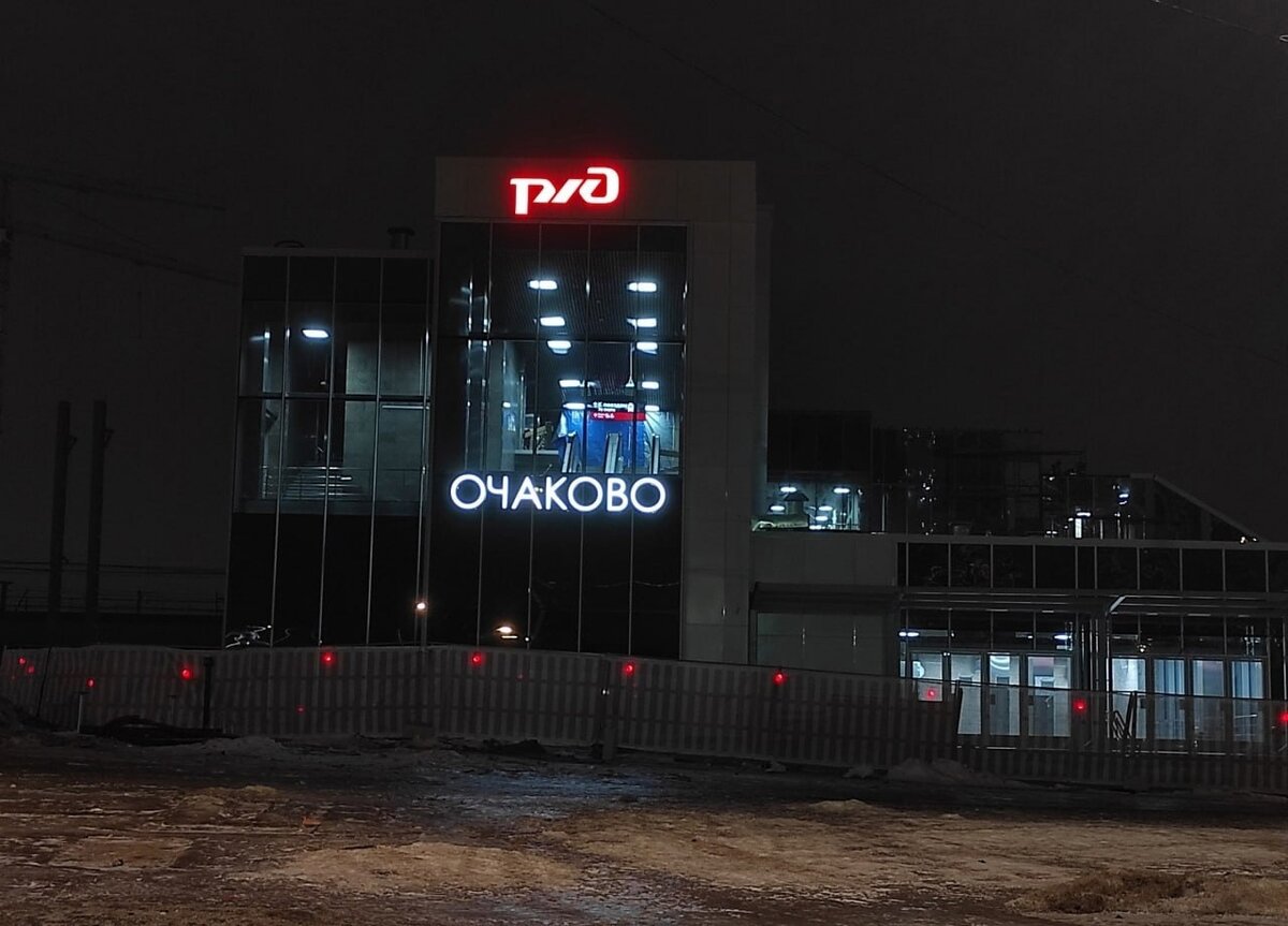 Смонтировано название станции и логотип РЖД на фасаде вестибюля со стороны улицы Наташи Ковшовой 🚊 станции «Очаково» будущего МЦД-4