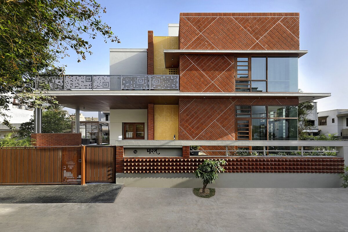 Дом в Гуджарате, Индия, получил свое название, исходя из главного строительного материала — кирпича, который был уложен под углом 45 градусов.