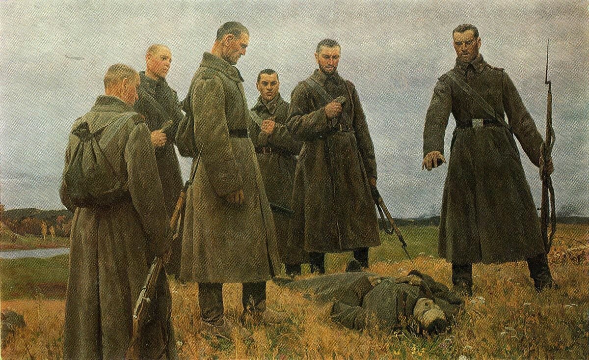 Постепенно историческая тематика приводят молодого художника к более тесному, детальному знакомству с национальным бытом, русской стариной, русскими традициями и становится частью его творчества. Поэтому после войны он преимущественно пишет на две темы. Первая — историческая, связанная с изучением русской культуры, и развивавшаяся под влиянием искусства Андрея Петровича Рябушкина (1861-1904) и Василия Ивановича Сурикова (1848-1916). Вторая — современная, отражавшая события войны и послевоенных лет.