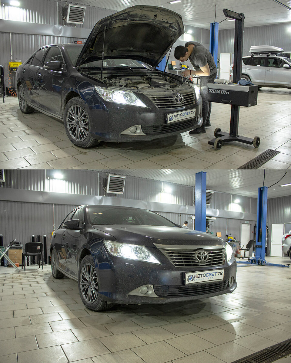 В работе Toyota Camry VII (XV50) замена штатных линз.