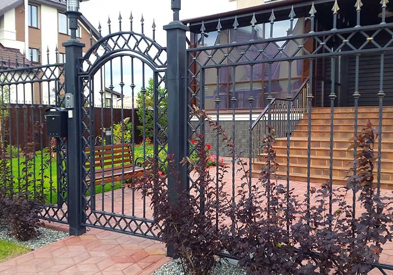 Какие бывают заборы Чтобы классифицировать ограды по видам следуют разобраться в их фундаментальных отличительных чертах. Чаще выделяют следующие различия: По этим категориям определяются преимущества и недостатки различных видов забора. Кованные Изделия из кованного металла – дорогое удовольствие. К исключениям не относят и ограду с видом кованных элементов. Вдобавок для гармоничного внешнего вида такое ограждение устанавливают вкупе с кирпичной или каменной кладкой, что завышает стоимость постройки. Основным преимуществом забора из кованных элементов называют декор. Действительно, такой вид ограды создает приятное впечатление. Ковка однозначно определяет вас как состоятельного владельца. Также примем во внимание использование ковки с другими в большей степени дешёвыми видами материалов: поликарбоната, евроштакетника, профнастила.