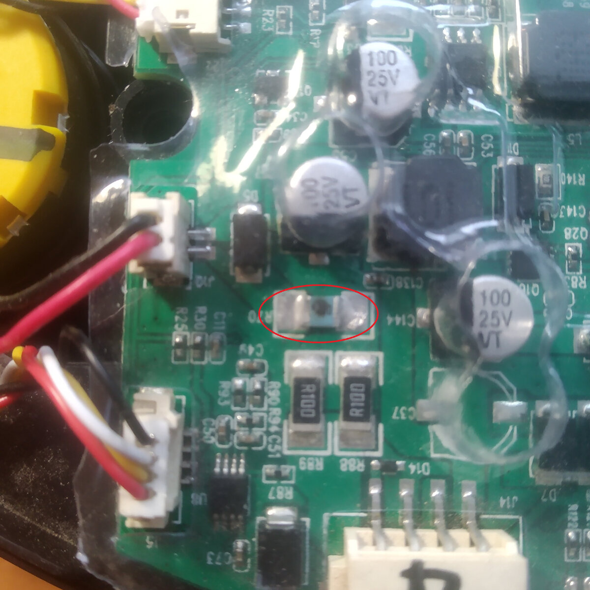Начало истории с этим роботом-пылесосом здесь. "Ну и гадость этот ваш робот-пылесос эта ваша заливная рыба!" (с). Суть. Робот-пылесос уходит в ошибку боковых щёток. Я предложил клиенту купить новые двигатели. Клиент их купил, один двигатель (который я разбирал) поменял сам. Но пылесос всё равно уходит в ошибку. Принёс мне. Вскрыл его для замены второго двигателя и осмотр показал, что опять резистор "сгорел". Получается, что двигатель потребляет большой ток, и резистор не выдерживает? Значит, когда клиент заменил двигатель, резистор уже был обуглен. Потому и ошибка. Заменил резистор, заменил второй двигатель. Но перед этим провёл небольшоё эксперимент)). Проверил старый и новый двигатели, подключив к БП на 12В. Это новый двигатель, без редуктора. Это старый, с редуктором. Прижимал щётки к столу, имитировал работу пылесоса)). Новый двигатель с редуктором. После сборки на двух новых двигателях и замены резистора R70, пылесос собрал и запустил. Полчаса, может, чуть более, отработал