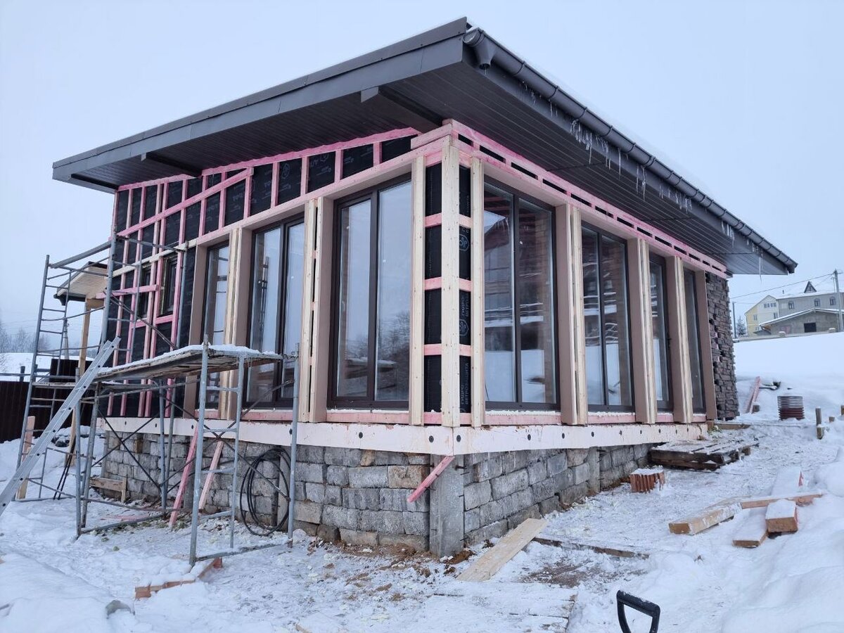 Друзья, всем привет! На связи Олег Кубрицкий. Возвращаемся на объект СФИНКС, где у нас строится дом и уже полным ходом идет строительство бани. Расскажу вам подробнее. Планировка бани предложена Заказчиком. Мой эскизный проект с разработкой экстерьера. Внутренняя площадь бани - 50,5 кв.м. • Парилка -12 кв.м. оборудована банной печью с чугунными колосниками и заполненной камнем (заполнение 250 кг, в т.ч. чугун 50 кг) • Предбанник • Мыльная с душевой стойкой и обливным устройством • Санузел • Комната отдыха - 31 кв.м. с панорамным остеклением и выходом на террасу с видом на озеро, комплексом барбекю и обеденной зоной. Фундаменты - ж/б монолитная плита на буронабивных сваях. Стены из керамического блока KAIMAN 30 г. Самара. Перегородки из двойного кирпича 2.1NF(М-150). Стропильная система из строганных пиломатериалов хвойных пород (огнебиозащита НЕОМИД 450-1). Кровля фальцевая. Вентилируемый фасад с облицовкой искусственным камнем White Hills Уайт Клиффс F 153-80 и планкеном 20х120