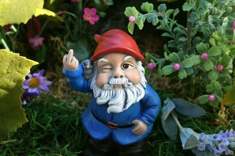 Продолжение. Однажды я была на даче у своих знакомых. Гости собрались, чтобы отметить день рождения хозяйки. Я там оказалась по приглашению дочки той самой хозяйки. Мне там было интересно все – как выглядят и что из себя представляют люди, фотографии на стенах, книги, журналы, разговоры. Света пригласила меня, чтоб не скучать со взрослыми, а мне эти взрослые оказались очень интересны. Кто-то из гостей рассказал про выражения лиц ужасных садовых гномов, которые в то время появились в продаже для украшения (или устрашения) садовых участков. Все от души посмеялись. Через некоторое время в калитку вошла женщина с высоченными гладиолусами, а следом мужчина в обнимку с тем самым уродливым гномом. Гном был довольно крупный, малосимпатичный, хитрющий, с невероятно большими губами, животом, и в полосатых гетрах. Собравшиеся с большим интересом наблюдали момент вручения подарка. У дарителей были такие довольные и искренние лица, видно было, что они от души решили порадовать именинницу. Мария П