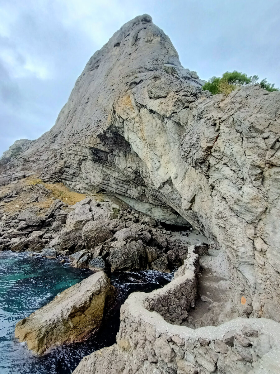 Известное место, даже говорить о том, что о нём никто не знает, не стоит! Все, кто приезжает в Судак, обязательно посещают его, а также многие другие, кто приезжают на одну из обязательных экскурсий с посещением Завода Шампанских вин и тропы вокруг горы Коба-Кая, именуемой тропою Голицына. Несколько раз видел этот грот в фильмах, но в них он какой-то неправильный, нет той реальности, огромности и красоты! В фильмах он очень фрагментарный и больше похож на пещеру, а, когда находишься внутри, то стены образуют свод над головой, а сторона, обращенная к морю, как изменчивый экран, в котором показывают фильм про небо и море... Грот Голицына создали не люди, а морские волны и ветер в горе Коба-Кая, его высота около 30 метров. Лев Сергеевич Голицын не был первым, кто использовал это чудо крымской природы, судя по найденным в XIX веке настенным росписям, которые сейчас уже не обнаружишь даже с фонарём, в средние века здесь был храм или монастырь, который можно было бы назвать пещерным по анал