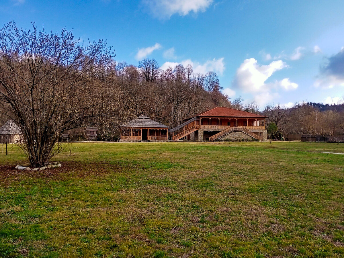 Традиционная абхазская усадьба представляет собой комплекс построек, в который входят: aюныду (в переводе с абхазского - большой дом), амхара (временная постройка для молодоженов), акуаскиа (хозяйственные постройки), аца (хранилище для кукурузы), акутыцра (курятник) и апацха (традиционная абхазская кухня).