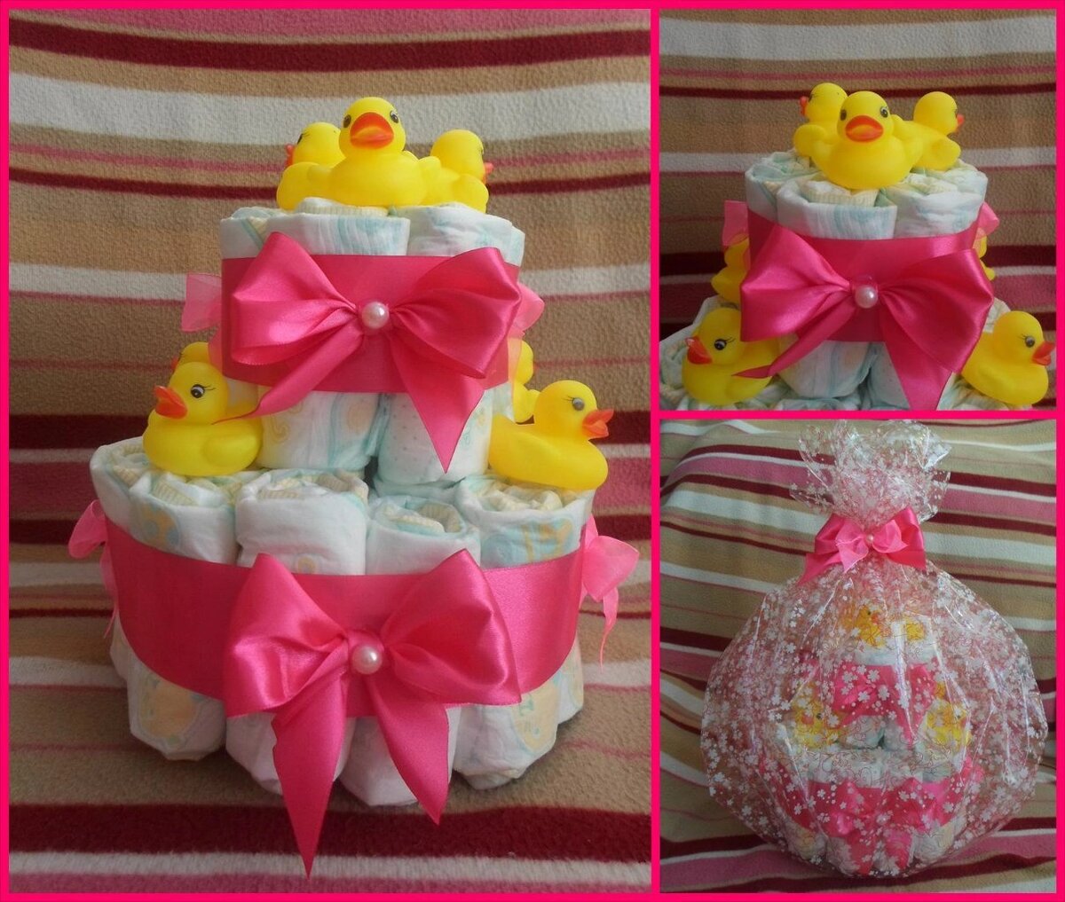 Всем привет! Для начала хочу поздравить всех Татьян и студентов с праздником! Пусть в жизни будет больше ярких моментов и солнечных дней ☀️ Ну и, как всегда поделиться своим творчеством 👐 на этот раз это торты из памперсов. Слышали о таких?! Если честно, когда впервые у меня заказали подобный торт, я немного опешила. Что? Торт из памперсов?! Что это? Как их делать? Но, покапавшись в сети Интернет, я узнала, что это и с чем "едят". В общем это несколько слоев скрученных памперсов, украшенные игрушками, погремушками, кремами, носочками, да чем угодно. Кстати, бантики которыми я украшаю тортик из памперсов съёмные. С обратной стороны крепление-брошь, чтобы потом их не выбрасывать, а можно было бы украсить кроватку, коляску, люльку. Количество ярусов и цветовая гамма на усмотрение заказчика Такие тортики отлично подходят для подарка на выписку из роддома или на годик малышу Хотите заказать мои бантики 🎀 ?!? Пишите ✉️ Я в Контакте: https://vk.com/yuliya_aseeva Я в Одноклассниках: http
