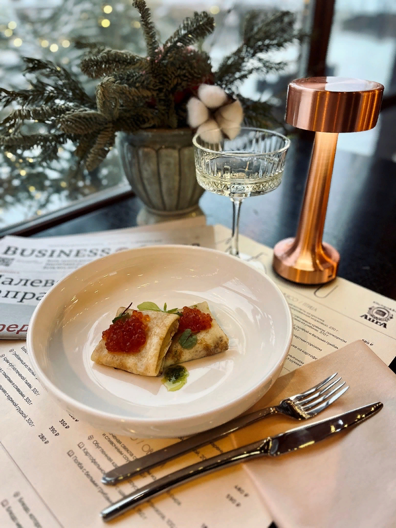 · Традиционные блины с красной икрой – обязательное блюдо праздничного или торжественного стола. Будет отлично сочетаться с бокалом игристого, которое вам с радостью подадут в выходной или праздничный день за завтраком;