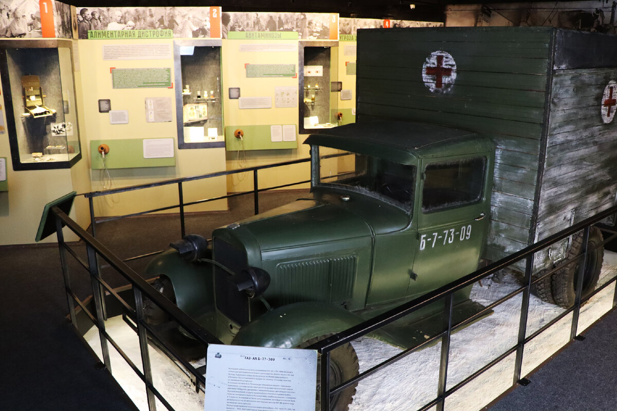 Экспозицию музея составляют предметы, многие из которых ранее никогда не выставлялись, а также 9 видеорассказов и аудиоисторий о жизни врачей блокадного города. Центром музейного пространство является подлинный санитарный автомобиль ГАЗ-АА, который также называли «полуторкой» из-за его грузоподъемности в 1,5 тонны. В годы войны он вывез по «Дороге жизни» более 20 тысяч человек, а сегодня помогает посетителям прогрузиться в историю легендарной транспортной магистрали через Ладожское озеро, во время блокады служившей единственной связью Ленинграда с «большой землей».