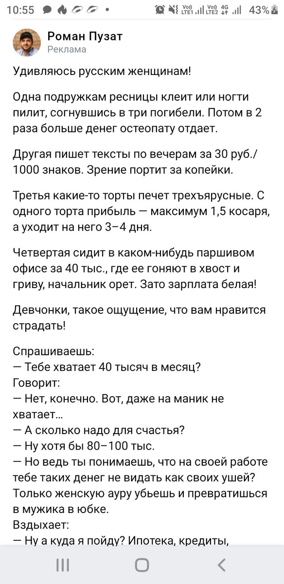 Мы, конечно, рады, что Роман пузат, носат и волосат. Очередной инфоцыган хочет бабла за чего то там. Правда, он не расскажет, что для того, чтобы сайт хотя бы отбивал расходы на оплату домена и хостинга, там должен быть качественный контент, который читают. И читают много. И этот вот товарисч слишком часто выпадает в рекламе. Даже ребенка где то надыбал. Что, успешный успех еще в моде? И да, он безбожно врет. Во-первых, алгоритмы так не работают. Стоит разок открыть какую-нибудь рекламу, закидают аналогичным. Во-вторых, лично мне этого пузата частенько алгоритмы выдают. Вот интересно, кто ведется на эту его херабору?