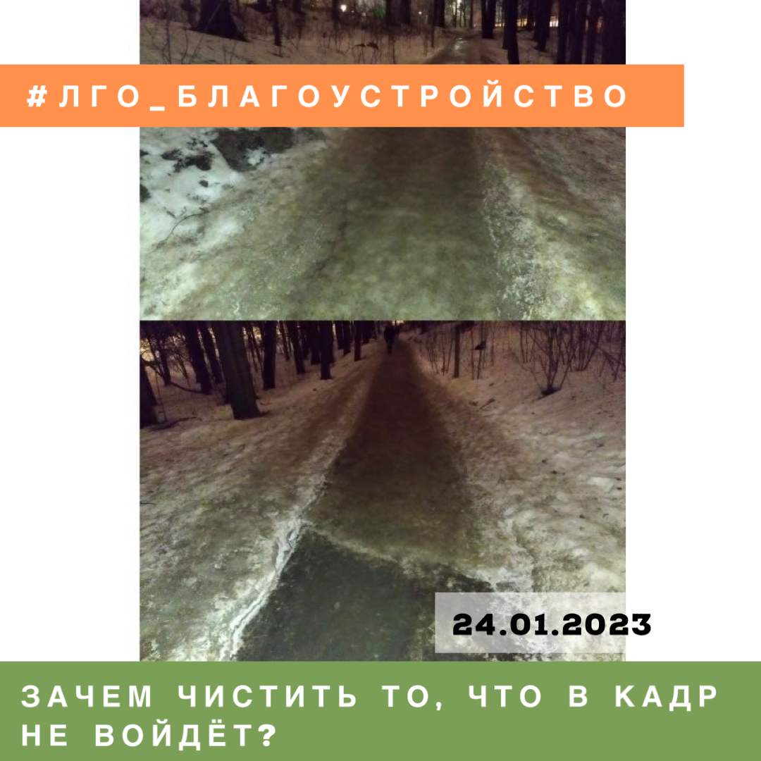 В сентябре прошлого года мы уже писали о том, что проложенная через Тимоховский парк новая пешеходная дорожка, спускающаяся от Дома Ребёнка к Олимпийской улице, будет пользоваться большим спросом у населения. Ещё бы: ведь это кратчайший путь к железнодорожной станции Расторгуево для жителей всего первого микрорайона города Видное! Он позволяет сократить почти 1,5-километровый пеший маршрут всего до 800 м. Однако мы предупреждали, что зимой неизбежно возникнут проблемы, связанные с оледенением спуска, и дорожка неминуемо превратится в неплохую ледяную горку. Именно так всё и произошло. Вчера с данным вопросом к нам обратился неравнодушный гражданин города Пётр. Видновчанин дважды писал о проблеме на сайте "Добродел", на что 23 января получил лаконичный ответ: проблема решена, дорожка почищена. Для пущей убедительности к ответу были приложены фотографии очищенной дорожки. Однако в самом парке Петра ждал сюрприз: дорожка оказалась почищена всего в двух местах - в начале и в конце спу