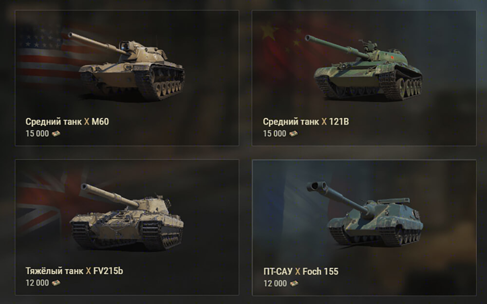Топы за боны – 10 уровень Ассортимент акционных десяток пока невелик и состоит буквально из 4 машин. Возможно в будущих итерациях появятся и другие топы, ведь потенциально таковые имеются, но это лишь догадки. Впрочем, даже из имеющихся 4 десяток мы готовы что-то посоветовать. Трудно сказать, какая из 4 десяток достойна быть в ангаре, ведь каждая неплохая как геймплейно, так и по ТТХ. . В качестве основного критерия отбора был взят такой параметр, как актуальность в нынешнем рандоме. Первое место занимает универсальный вояка 121B, который обрел новую жизнь с момента своего последнего апа. В мете всех СТ-10 игры китаец далеко не имба, но отпор дать способен и вполне играбелен в плюс-минус прямых руках. Британский тяж FV 215b расположившийся на втором месте обладает одним из лучших стволов в WoT и к сожалению это единственный его плюс. Во всем остальном танк проигрывает большинству ТТ-10. М60, занимающий третье место очень комфортная машина в плане стрельбы и подвижности. Но к сожалению,