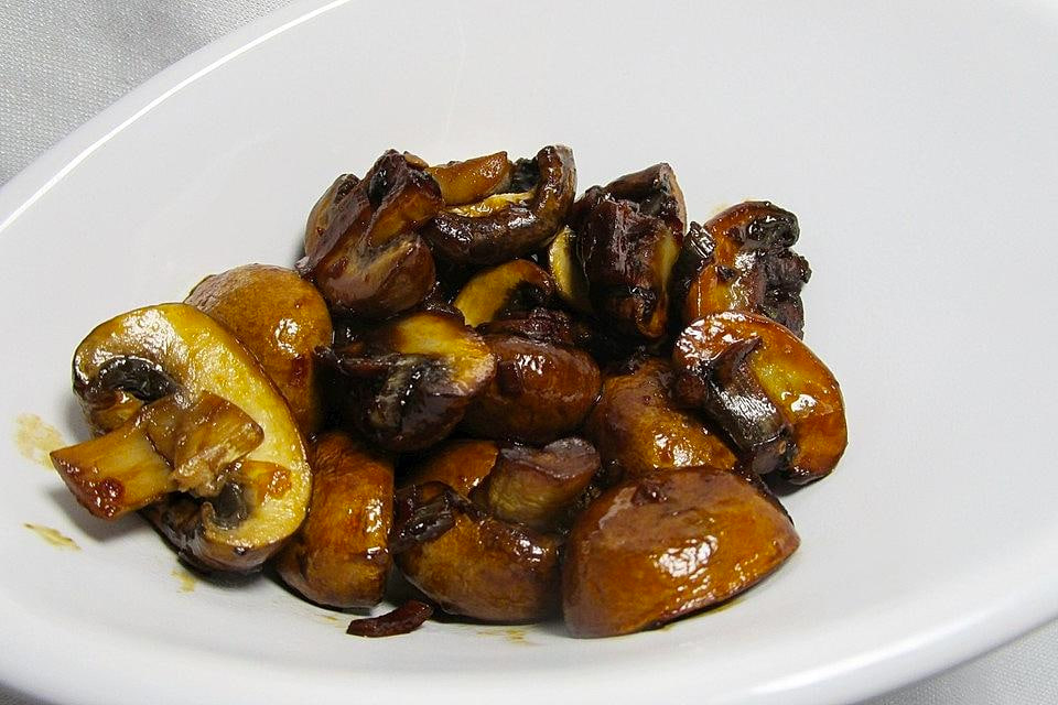 Вообще, лучше так приготовить шиитаке или ещё какие грибы с претензией на азиатское происхождение. Культивированные опята или лисички тоже пойдут.