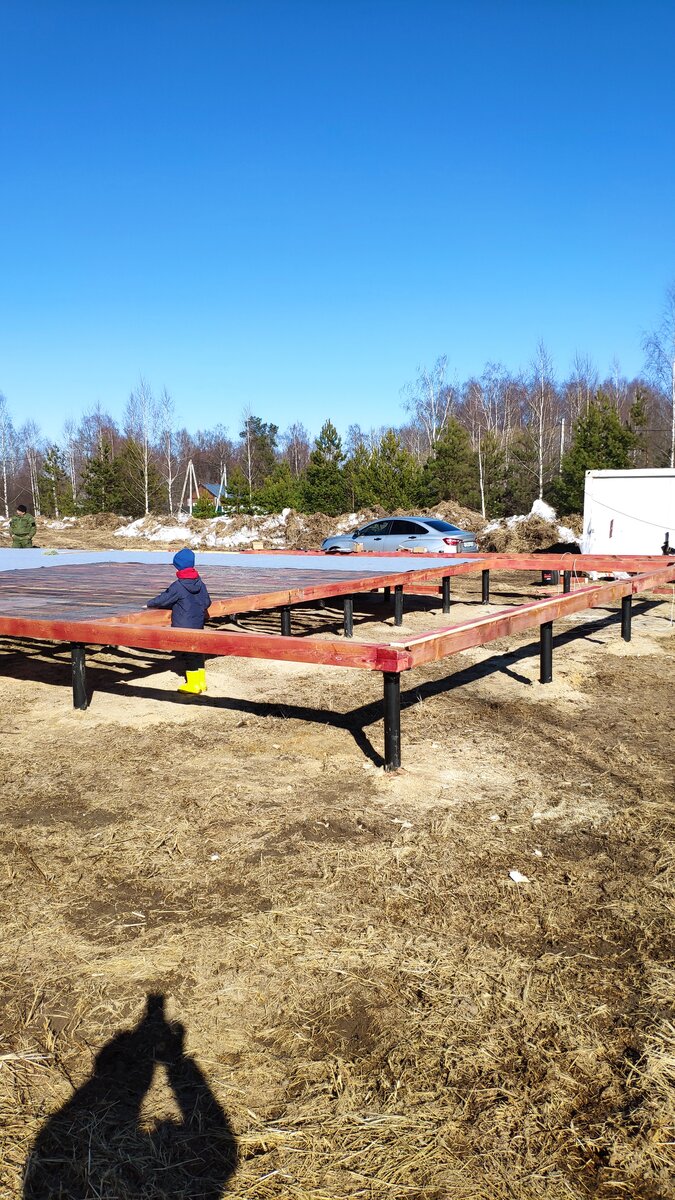Ездил после работы посмотреть на ход строительства. Уже установлен обвязочный брус, сетка от грызунов, пароизоляция и материалы обработаны огнебиозащитой. Заодно познакомился с бригадой, позадавали им вопросы по строительству. Подсказали заодно им, где находится баня в соседней деревне. Бригада понравилась. Это татары, живущие в Пензе. Все родственники. Застройщик привез им теплую бытовку, они сколотили себе уличный туалет. Узнали у нас, где колодец и ближайшая баня. Чистые, опрятные, с неплохим инструментом. Обещали строить качественно. Для сравнения, товарищ тоже начал стройку, но выгнал спустя 2 недели бригаду: побухивают, не моются, даже рукомойника себе не сделали на улице. Бытовка - скворечник. Выглядят совсем неопрятно. Говорит, если они себя не уважают, то что говорить о качестве работы. Погодка пока топ, +8 градусов. Площадка под строительство сухая. Хорошо, что не пожалели денег на трактор в своё время и расчистили площадку от снега и прошлогодней травы. Со среды обещают до