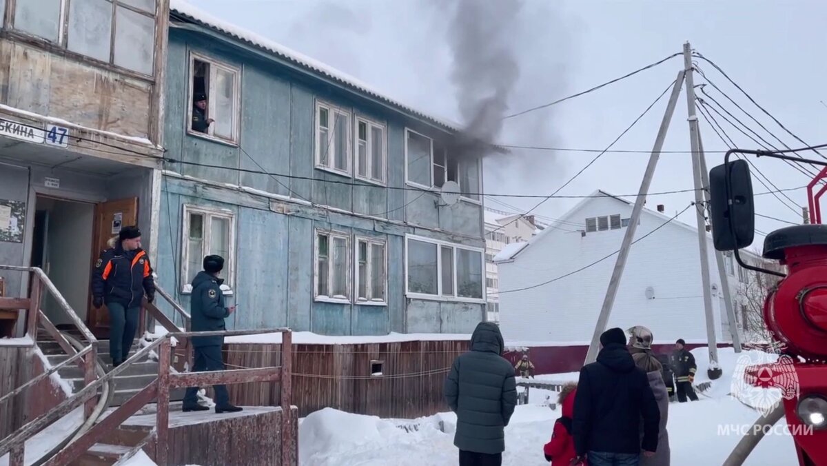 В Салехарде спасатели эвакуировали жильцов горящей «деревяшки»