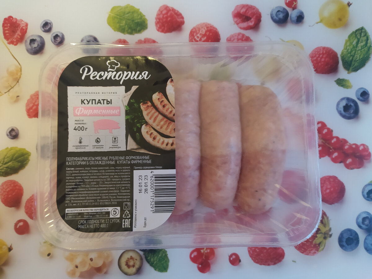 Здравствуйте, Друзья😊 В своё время меня так допекли мясорубкой, что я, всё-таки её купила. Но время крутить и готовить есть не всегда. Поэтому полуфабрикаты по прежнему считаю полезной вещицей. Сегодня купила по акции в Пятёрочке за 149 руб. купаты Рестория фирменные. Купаты нам понравились. Внутри нет кусков жира. Фарш аккуратно перемолот. Не пересолено, не остро. Жирновато, так это свинина. В общем, если смотрите на полуфабрикаты, рекомендую попробовать купаты Рестория.