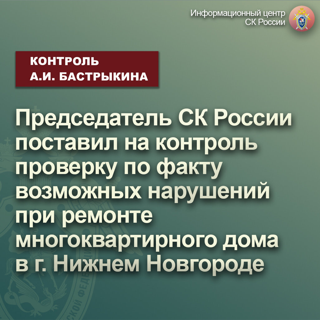 Председатель Следственного комитета Российской Федерации Александр Иванович Бастрыкин поставил процессуальную проверку на контроль в центральном аппарате ведомства и поручил р