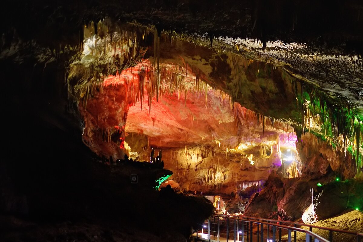 В течение часа вы сможете любоваться подсвеченными образованиями из сталактитов и сталагмитов. В подсветке эти природные скульптуры кажутся еще более невероятными. Интересно их рассматривать, придумывать ассоциации или просто любоваться удивительным сочетанием причудливых форм.