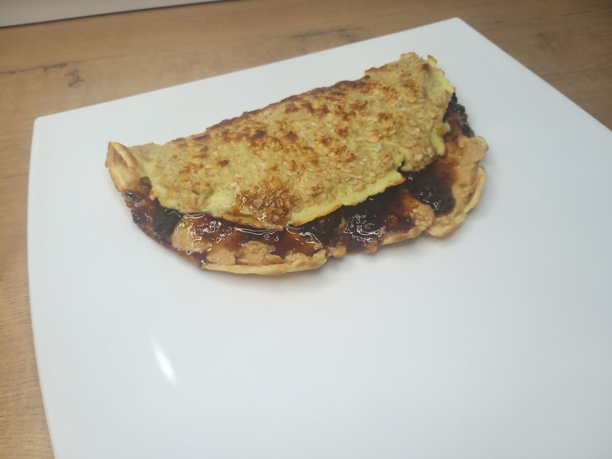 Всем привет. Сегодня я решила поделиться с Вами именно этим рецептом. Такой блинчик идеально подойдет на завтрак. Его можно сделать с любой начинкой. Например, с ним подать курицу и сыр, или же фрукты. Также я люблю с арахисовой пастой и кисленьким вареньем. В общем что в него не добавь, он будет очень вкусный. Я Вам расскажу вариант приготовления блинчика со сладостями, если Вы захотите с другой начинкой приготовить, то просто замените ее. Очень надеюсь, что Вам пригодится этот рецепт. И Вы поддержите меня как начинающего автора. Поддержать меня можно простыми действиями, подписаться на мой канал, поставить рецепту лайк и написать под ним комментарий. Итак, для приготовления одной порции нам потребуются следующие ингредиенты: - овсянка (3 столовых ложки); - молоко (3 столовых ложки); - куриное яйцо (1 шт.); - соль (щепотка); - ореховая паста (2 столовых ложки); - малиновое варенье (2 столовых ложки); - подсолнечное масло для жарки. Высыпаем в миску, в которой будет удобно перемешива