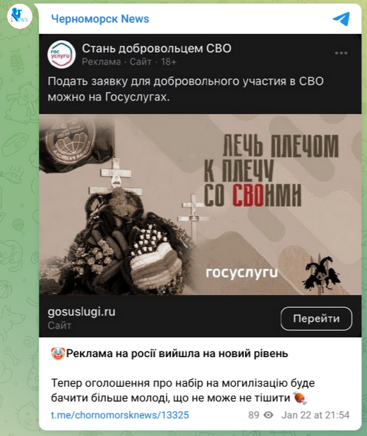 Что проверяем Правда, что «Госуслуги» запустили рекламу, приглашающую «лечь плечом к плечу» в могилу добровольцев СВО? С чего все началось «Госуслуги» приглашают добровольцев СВО «лечь плечом к плечу со своими» в могиле — такой рекламный баннер стали распространять украинские каналы. «Реклама в России вышла на новый уровень», — иронизируют авторы. Как на самом деле Эта несуществующая рекламная кампания — результат работы в графическом редакторе. За основу была взята картинка, которую действительно использовали в официальной рекламе контрактной службы в ВС РФ в сети. Дальше на нее наложили фото могилы и провокационную надпись. Это уже не первый раз, когда когда украинские паблики подделывают рекламу «Госуслуг». В декабре прошлого года в соцсетях опубликовали фейковое агитационное видео, описывающее бонусы для добровольцев СВО, которое якобы выпустили «Госуслуги». Техподдержка сервиса тогда сообщила, что «Госуслуги» не делали этот ролик.