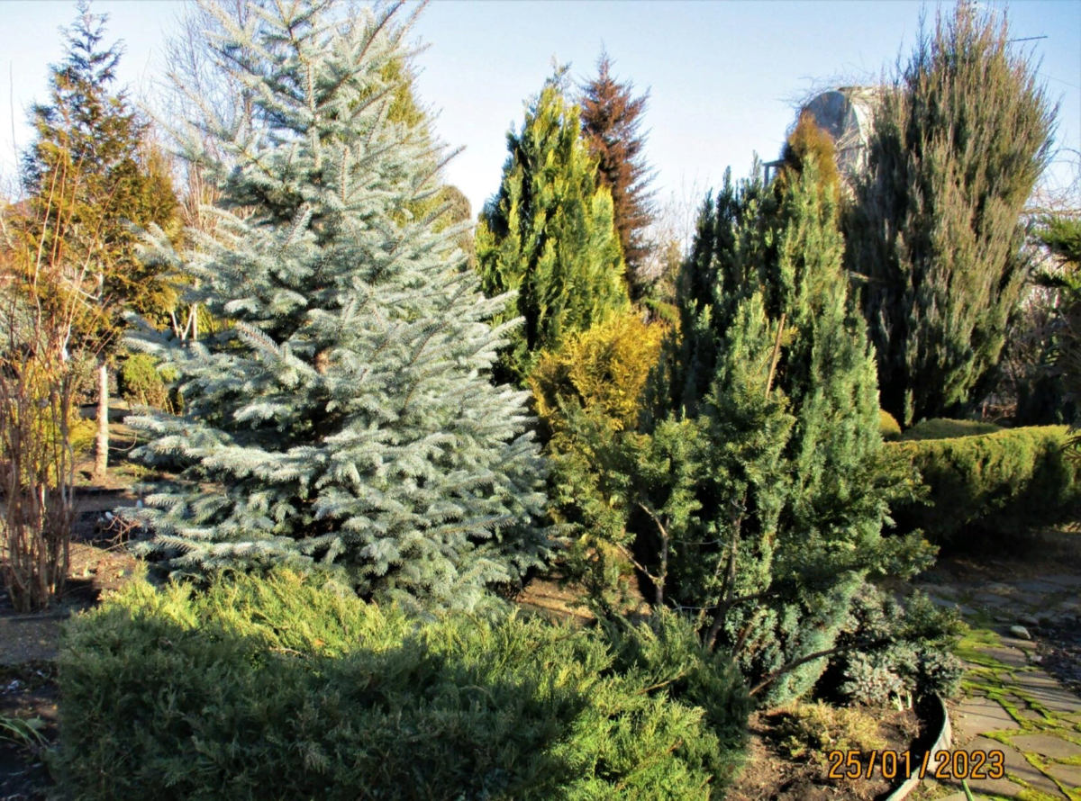 Очень давно не показывала свой сад. Уже заканчивается январь . 34 дня до весны . Сад зимой не интересен без цветов. Одни хвойные! Прогуляемся по тропинкам и посмотрим на мой зимний сад. На фото выше- голубая ель и кипарисовик "Элвуди". Здесь хвойные самые разные. Туи "Смарагд" и "Голден Глоб". Ёлочка "Коника", кипарисовик голубой "Пелтс Блю" и справа ""Алюми". На общих фото не видно мелкие цветочки, но они уже всходят. Это галантусы и самосев примул с прошлогодними, неприглядными листьями. На крокусах уже даже бутончики появились. Под всеми хвойными растут луковичные. Так в бордюрах растёт армерия. На ней тоже есть бутончики. Она всю зиму красиво выглядит. Под скумпией растут мускари. И под всеми этими "ёлками" растут самые разные цветы- очень много разных луковичных и многолетних, таких , как прострелы, гвоздики, ромашки, хохлатки и ещё долго можно перечислять. На фото кипарисовик Лавсона "Элвуди", за ним голубая ель, можжевельник "Хиберника" и туя "Голден Глоб". Маленький