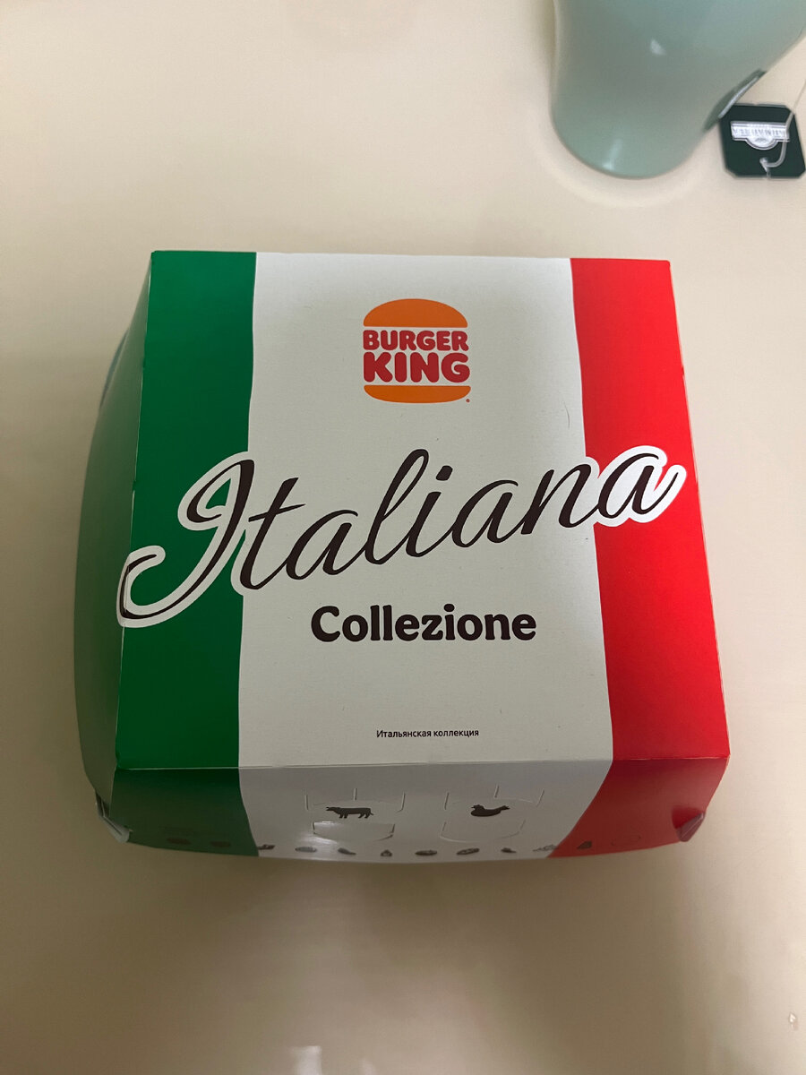 Всем привет! Сегодня сделаем обзор на новинку из Бургер Кинга-Итальяно Кинг. Очень интересная позиция по заявлениям+нестандартный для БК соус, т.к. любят класть только кетчуп и майонез, соус Песто выглядит тут прорывом. Посмотри, что будет в реальности. Для бургера сделали специальную упаковку. Это очень приятно, потому что есть любители завернуть новинки просто в бумагу и никак их не выделять. Здесь же есть ощущение покупки, чего-то нового и особенного. На булочке действительно присутствует сыр, но в этом есть и минусы. Мне достался с обугленными куском. Это не очень приятно, но открыл я его только дома, поэтому претензии предъявить уже не смог. Посмотрим, что у нас внутри. В бургере присутствуют 3 помидора, салат, соус. По всей видимости он должен быть очень сочным, в отличии от Ангус 4 сыра (там просто сухомятка). Как итог-отличный бургер за свои деньги. Есть фирменный вкус котлеты от БК, сочность, чувствуется соус «Песто». Рекомендую его попробовать всем! Рад, что БК нас порадо