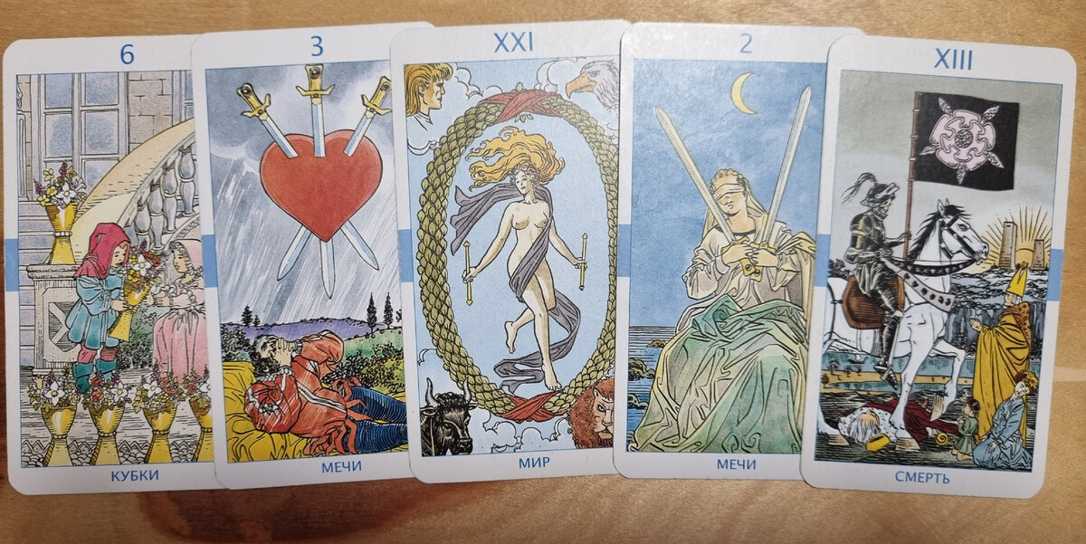 Набирают популярность мини-расклады за маааленькую стоимость ))) Или людям лень читать, анализировать мега-расклад на пол-колоды, не понимаю пока. Поехали. Обратился молодой человек, который хочет вернуть свою бывшую девушку. То, что бывшая сразу шестерка кубков показала. Люблю я нежно эту карту, она про ностальгию, про золотые годы, хорошие воспоминания, детскость и прочие мимими. Но не в нашем случае. Тут Девушка помнит, как в прошлом было разбито ей сердце и скорее всего это либо измена, либо ее заменили на кого-то иную, т.к. обида и разочарование скорее 10-ка мечей показала бы, тройка она и в Африке тройка, третья сторона была 100%. Погоревала наша Девушка, да и перестала. По Миру это окончание отношений, т.к. пора пришла. Отболело,отстрадала, все. Это не Башня, когда земля из под ног, тут вулкан сам затух под влиянием времени. Двойка мечей это всегда "нет". По одной карте можно было бы ответ получить, вытянув двойку. не, парень, все умерло, это расставание трансформировало нашу