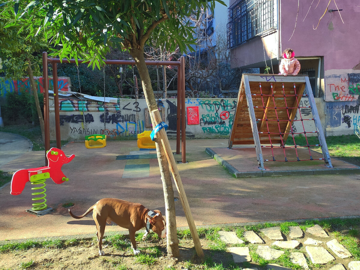 Так как у меня много читательниц женского пола и много мам, я решила, что уделю особое внимание детским развлечениям в Стамбуле. А так как я ездила в Турцию с ребёнком, то расскажу, какие там детские площадки, что понравилось, а что нет. Начну с того, что длина мы в районе Кадыкëй, но ездили часто и в другие районы. В Кадыкей не очень много площадок и те, которые находились были мягко говоря не очень. Район старый и площадки тоже. Чаще всего они были исписаны маркерами и грязные. А ещё встретить гуляющую собаку на детской площадке это нормальное явление. При том, что порода может быть бойцовская и к тому же без намордника. Собака может бегать вокруг качелей среди детей, а хозяин мирно кататься на той же самой качельке. А ещё собака может залезть на горку и скатиться с неё иди спрыгнуть. Собака на горке это тоже в порядке нормы как я поняла. Конечно, мы ушли с такой площадки, потом туда привалило ещё несколько других собак с хозяевами. Парков особо нет, газонов тоже, котиков и со