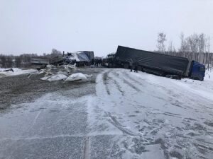КамАЗ сплющило от столкновения другим тяжеловесом под Новосибирском — водитель скончался