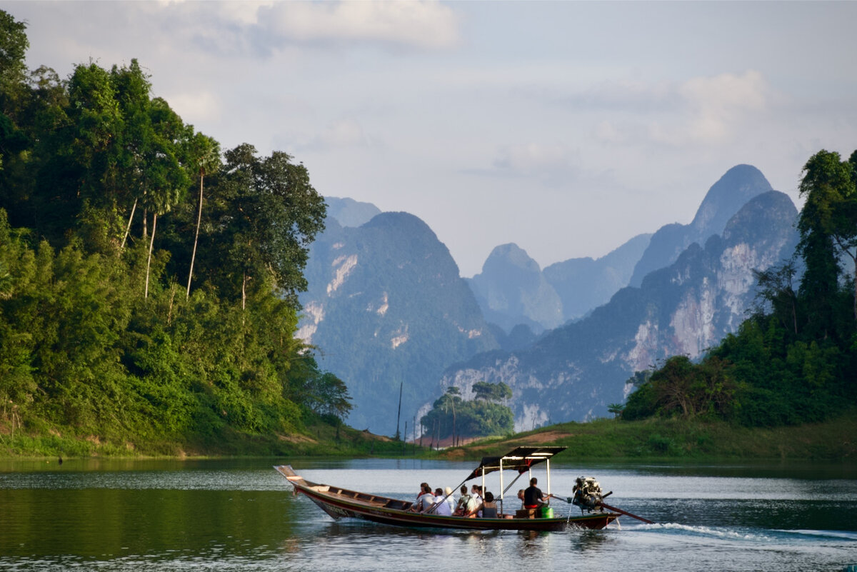 Чео Лан раскинулся на площади около 160 квадратных километров в невероятном ландшафте карстовых скал, поэтому виды там просто сумасшедшие. Затерянный мир, пейзажи «Аватара», первозданная красота – только такие эпитеты приходят в голову, когда петляешь между причудливых скал на лонгтейле – традиционной тайской лодке.