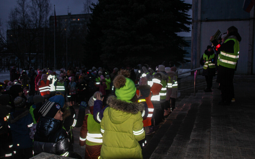 «Засветись!» – с таким призывом к своим сверстникам обратились ученики тверской школы №1, где сотрудники городского отдела ГИБДД провели вместе с ними яркую и веселую акцию. Ее цель – обратить внимание детей на то, что на дороге нужно быть заметным для водителей. Такую акцию сотрудники Отдела ГИБДД по городу Твери и школы №1 проводят уже не впервые. Школьники подготовили целое представление – с импровизированной сцены они прочитали стихи и исполнили песни на тему безопасности дорожного движения. «Сцену» яркими фарами и проблесковыми маяками осветили целых два настоящих патрульных автомобиля ДПС. Школьникам напомнили о том, как правильно вести себя на проезжей части дороги зимой, какие правила необходимо соблюдать при движении в автомобиле, на пешеходном переходе. Конечно, напомнили и о такой важной мере безопасности как световозвращающие элементы на одежде. Все участники акции были одеты в яркие желтые жилеты или имели на одежде специальные фликеры, которые отражают свет и делают ребен