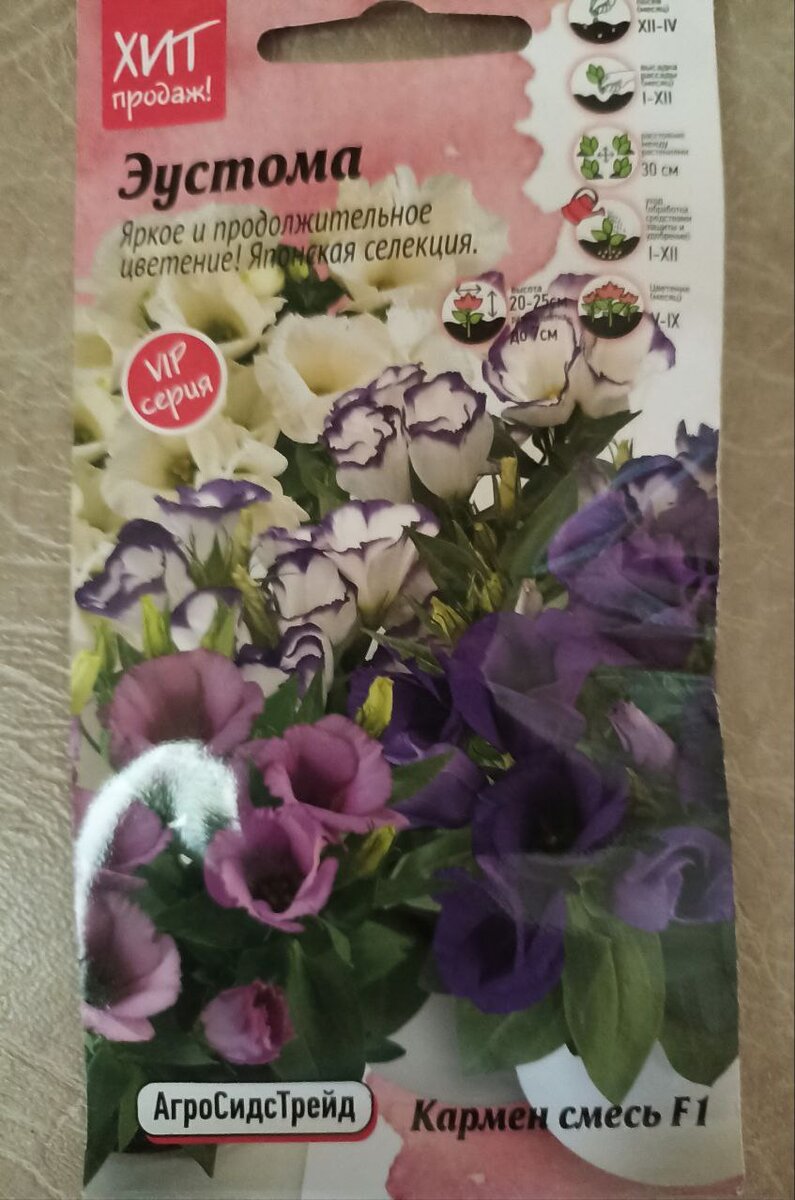 Среди садоводов Эустома стала пользоваться большой популярностью, поэтому никак не смогла обойти её своим вниманием. На пробу взяла низкорослый сорт, сеять буду примерно через месяц, в конце февраля. Знаю, что многие уже вовсю её сеют, но лампы у меня нет и покупать не планирую. Предпочитаю растения без заморочек, а Эустому купила протестировать на агротехнику.