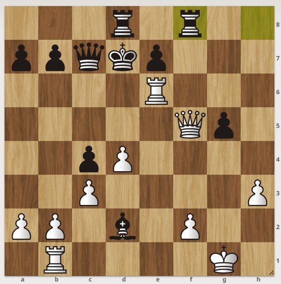 Шахматная задачка. У черных лишний слон. Однако, белые начинают и ставят мат в 2 хода. Подписывайтесь на канал, ставьте лайк. Решение смотрите далее. 1. Белые отходят ладьей на "f6", шах. 1. ............................. черные идут королем. Другие варианты пишите в комментариях. 2. Белые бьют на "f8", мат. Следующая задача тут