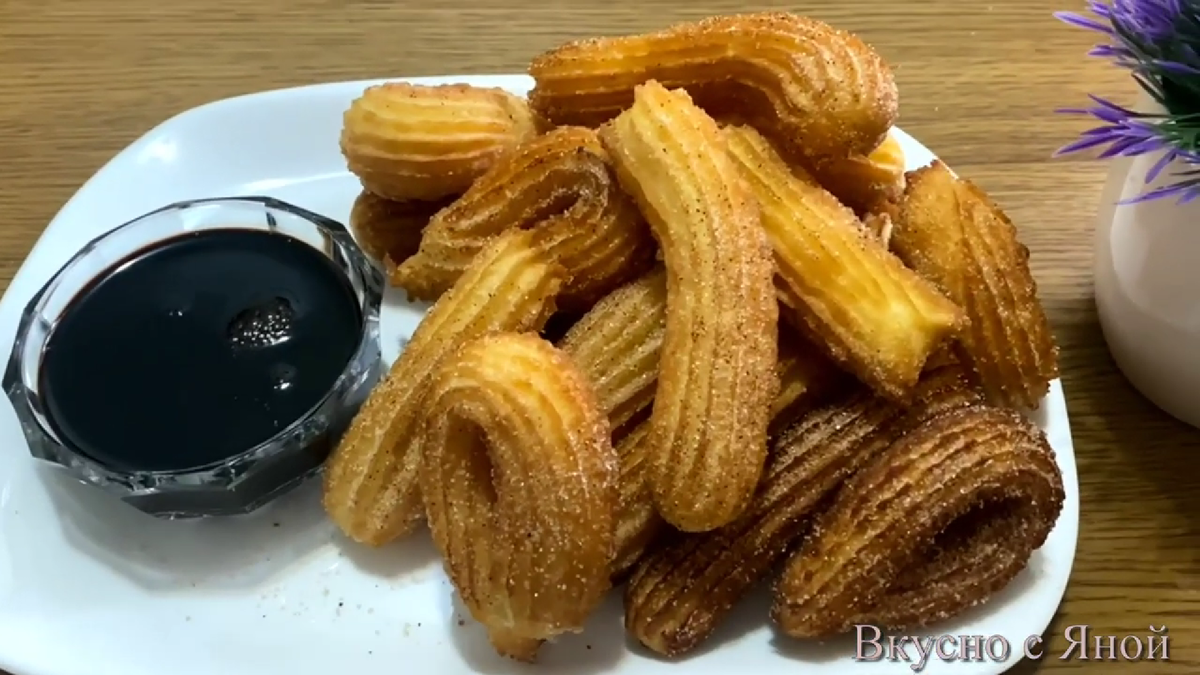 Чуррос» - это сладкая выпечка из заварного теста, жареная во фритюре, которая готовится легко, быстро и с простых и доступных ингредиентов. После обжаривания «Чуррос» получаются с хрустящей корочкой и нежной, мягкой серединкой. «Чуррос» очень вкусно подавать с шоколадным соусом. Чуррос - это Испанский десерт из заварного теста, с очень вкусной хрустящей корочкой. РЕЦЕПТ