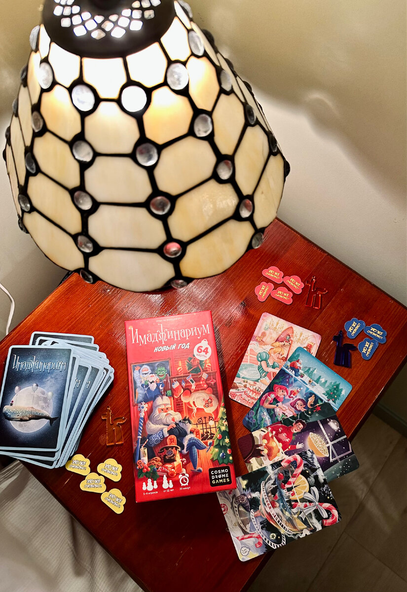 Всем привет!🤗 Сегодня показываю вам настолку, которая пролежала у нас на столе ВСЕ новогодние праздники! Мы открыли коробку 1 января и проиграли в игру все каникулы – даже в поездку с собой брали и там успели поиграть🙃 👥 от 3 до 6 игроков ⌛️ 30 мин. 🔞 12+ Не знаю, стоит ли объяснять тут суть игры – мне кажется, что все уже давно знают это чудо веселья, поэтому я просто опишу тут наши впечатления от этой коробочки. Но! Если есть такие, кто еще не играл – отзовитесь! Я расскажу правила, и вам сразу захочется эту настолку домой😁 Мы играем в Имаджинариум довольно давно и у нас уже внушительный набор дополнительных карт к большой игре, а этот дорожный формат – уже третий!🤯 Прелесть компактного оформления очевидна – ее удобно кругом таскать с собой. В этих форматах коробка и есть игровое поле, и на нем очень удобно крепятся фишки. Фишки тут тоже фигурные, но не слоники – как обычно, а олени😍 Правда, мы долго думали, что это жирафики, пока я не прочитала описание к игре🤦🏻♀