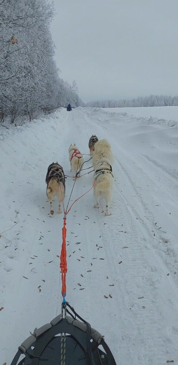 Сегодня я поспала не «стандартные» 3 часа, как обычно в последнее время, а целых 4! И, разумеется, проснулась не только полной энергии (на самом деле нет, но я пыталась), но еще и с некоторым количеством безумных идей в голове, которые немедленно требовали воплощения. Конечно, «мучиться» от этого предполагалось не только мне. Сначала мы с Никой поехали посмотреть, насколько плачевно обстоят дела с трассой для собак. То есть у нас все еще повсюду лед, но «душа требует»... приключений на попу, естественно. Я отправилась на снегоходе на всякий случай, для «подстраховки», а Ника запрягла пятерых собак, и мы помчались!.. Ровно до второго поворота, где Нику просто вынесло на скорости в поле. Но все обошлось (с нее только шапка слетела), и приключение продолжилось. Трасса с заснеженными деревьями была потрясающе красивой, но Ника, как потом выяснилось, не смогла ею насладиться, так как всю поездку пыталась просто удержаться на нартах на льду. Затем (вы же помните, что я поспала дополнительный