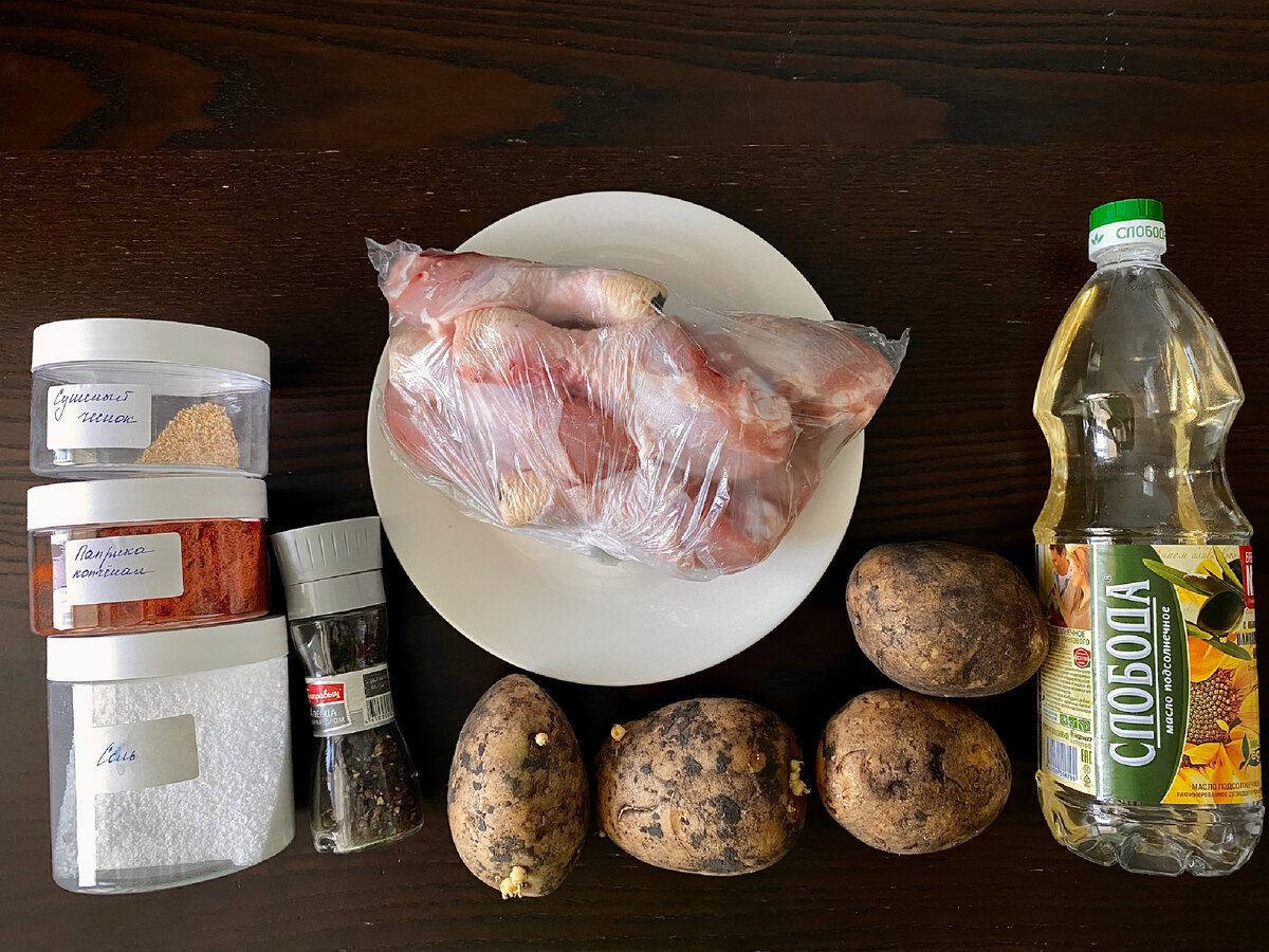 Ароматные, аппетитные, для любого случая. Куриные голени с картошкой в духовке - это универсальное блюдо, которое совмещает в себе и второе, и гарнир. Они подойдут и для праздничного стола, и для будничного обеда или ужина. Сытно, вкусно и без особых хлопот. Ингредиенты: Голень куриная - 1кг Картофель - 1 кг Чеснок сушеный - 1 ч.л Паприка копченая - 1 ч.л Масло растительное - 2 ст.л. Соль - 1 ч.л с горкой (12 гр) Перец черный молотый - по вкусу Время приготовления: 90-120 минут Порций: 4 Приготовление: 1. Картофель нарезать полукольцами (не сильно тонко). 2. Сверху выложить голени, добавить все специи и растительное масло. Все хорошо перемешать. Если есть время, оставьте промариноваться на 30 минут. 3. Уложить в форму для запекания сначала картофель, сверху курицу. Вылить образовавшуюся на дне чаши жидкость прямо на курицу. 4. Убрать форму в разогретую до 190 °С духовку на 1 час. Ставлю на средний уровень. По истечении времени проверьте на готовность картошку. Если она сыра