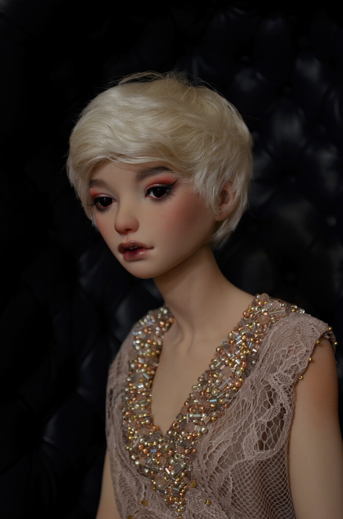 Привет всем! В рядах моих девиц пополнение - Мика. Процесса будет совсем немного, подробно лепку головы не фотографировала. В предыдущей серии кукол была Юки, которую я до сих пор люблю, решила новенькую сделать на неё похожей. Примерно вот так выглядит уже слепленная и частично загрунтованная голова (она серая и самая большая из всех): Когда голова готова, я её крашу в ФШ, чтобы посмотреть, чего ждать от куклы на этапе росписи: Этапа со снятием форм и литьём нет, так что сразу роспись. Здесь две Мики - в карамельном цвете и айвори, расписываю сухой пастелью и акрилом, иногда использую акварель и акварельные карандаши, закрепляю лаком "Супер Клир": Роспись тела показывать не буду, изготовление парика тоже пропущу, я, по-моему, даже ни разу не фотографировала изготовление парика. Так что дальше пусть будет одежда. Подбираю материалы, делаю миксы из бисера, конструирую, отшиваю. Платья, даже крохотные, трудоёмкая штука. На платьях из тонкого шёлкого шифона большинство швов выполнены вруч