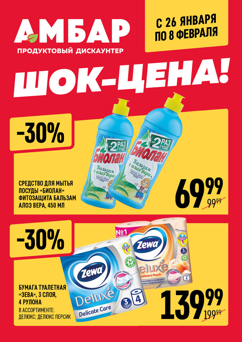Каталог акций сети дискаунтеров "Амбар", действующих с 26 января по 8 февраля 2023 года