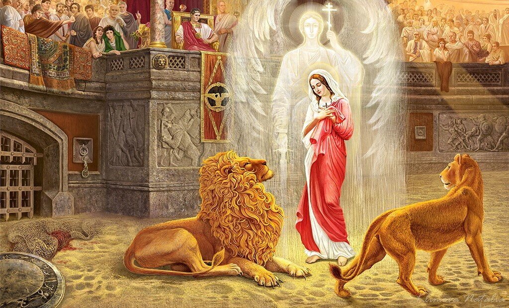 Мученица Татиана Святая родилась в богатой римской семье и была воспитана в христианской вере. В совершеннолетнем возрасте она отреклась от золота и других земных благ и посвятила себя духовному образу жизни. Супружество Татиана также отринула. Став диакониссой Римской церкви, девушка помогала больным и неимущим, посещала темницы и совершала множество других добрых дел. Страдания мученицы начались во времена правления императора Александра Севера. Причиной тому послужило исповедание Христа. За это Татиану всячески терзали и даже бросили на арену цирка, чтобы лев загрыз ее прямо на глазах у озверевшей толпы. Но хищник стал ластиться, словно безобидный котенок. Тогда мученицу усекли мечом. Но даже слуги градоправителя Ульпиана, который отдавал жестокие приказы, уверовали в Христа, видя божественную силу Татианы.