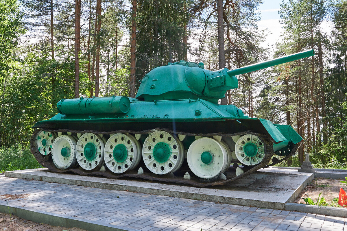 В деревне Самбатукса, Олонецкого района Республики Карелия, на вершине холма стоит танк – знаменитая тридцатьчетверка.