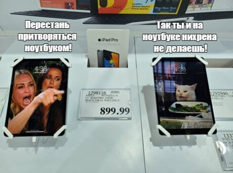 А вот сами яблочники начиная с air версий начали намекать что айпадами можно заменить полноценный ноутбук. Все конечно послушали, покивали и продолжили смотреть на них ютуб и включать на них детям фиксиков. Я серьезно, очень большая часть владельцев айпадов пользуются ими как переносными телевизорами. Им даже на производительность особо нет дела. Ютуб к железу не требователен)