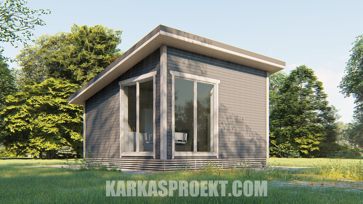 Каркасная баня 6х6 с простой односкатной крышей.