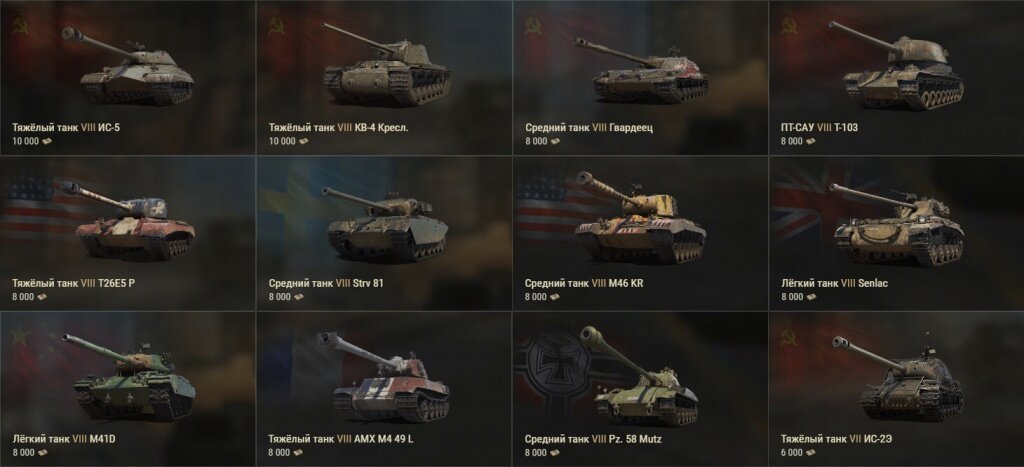 На самом популярном уровне среди игроков расположилось в общей сложности 24 премиум машины различных классов и ролей, от шустрых светляков до тяжелых штурмовых монстров.