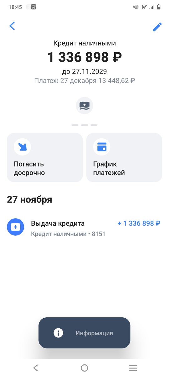 Второй платёж по кредиту - завтра. Уменьшаю его сегодня