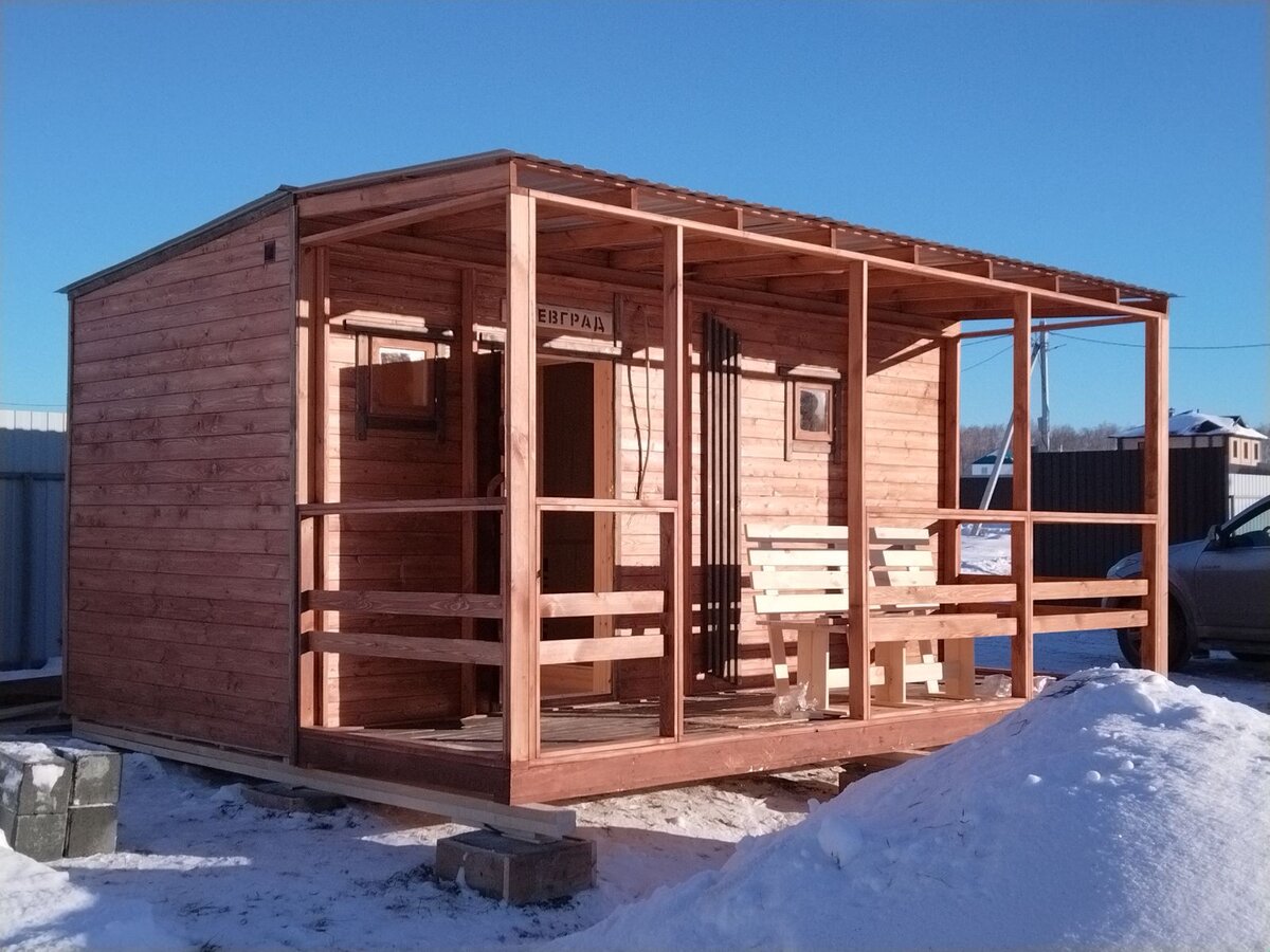 Любимая нашими клиентами классическая планировка. баня 2,3*5 с террасой 1,5*5. В бане 2 отделения – просторная парная с централизованным сливом и комната отдыха. В парной – двухуровневый полок, печь Астон-12, оснащенная баком для нагрева воды на 50 л. Отделка парной – термостойкая липа, на полках – ароматный кедр. Терраса предназначена для отдыха после парения, в подарок клиенту установлен комплект мебели, который отлично подходит для этих целей. Баня окрашена в классический цвет декоративной пропитки – “фундук”.