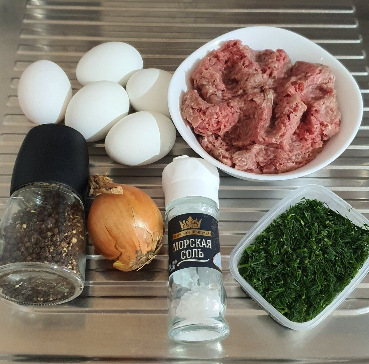 С этим рецептом меня познакомила Елена. Блогер, у которого вы встретите очень много интересных и новых для себя рецептов. Я очень часто делаю мясные зразы и рулеты с яйцом, это всегда сытно и просто. Это блюдо покоряет не только простотой приготовления, но и необычным внешним видом. Как я уже писала выше, я немного изменила рецепт под свои вкусы, а с оригинальной версией этих котлет можно познакомится в блоге Елены. Ингредиенты: Для котлет: - фарш 500 грамм ( у меня свино-говяжий, но думаю подойдет любой, из мяса или птицы) - яйцо куриное 5 штук - лук репчатый 1 средняя луковица - соль, черный молотый перец и зелень по вкусу Для соуса: - сметана 150 грамм - томатная паста 1 столовая ложка - чеснок 1-2 зубчика - сыр твердый 50 грамм 4 яйца сварить вкрутую, очистить и разрезать вдоль на половинки. Лук очистить и нарезать мелким кубиком, натереть на терке или измельчить в чаше блендера. Зелень промыть, высушить и мелко нарезать. В миске соединить фарш, лук, зелень и 1 сыро
