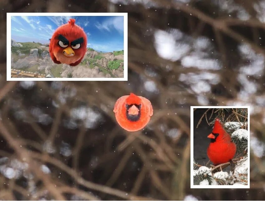Самое приятное в фотографировании птиц то, что вы никогда не знаете, что может случиться. Это, безусловно, относится к Скотту Тейлору, который получил больше, чем рассчитывал, когда фотографировал птиц у себя во дворе. В тот день фотограф решил протестировать новую камеру, подаренную ему женой, и сделать снимки птиц, летящих к кормушке с семечками подсолнуха. Тейлор увлечённо щёлкал всё подряд и только потом, рассматривая фотографии, увидел этот кадр, на котором красный кардинал летит прямо на него. На фото Тейлора видно, насколько решительно этот кардинал хотел перекусить, птица действительно напоминает известную Angry Bird с нахмуренными бровями. Тейлор живёт в небольшом городке в штате Небраска, в котором всего 960 жителей, все знают друг друга, и был приятно удивлён, когда после размещения этой фотографии в Сети получил большое количество положительных откликов «со всего мира».