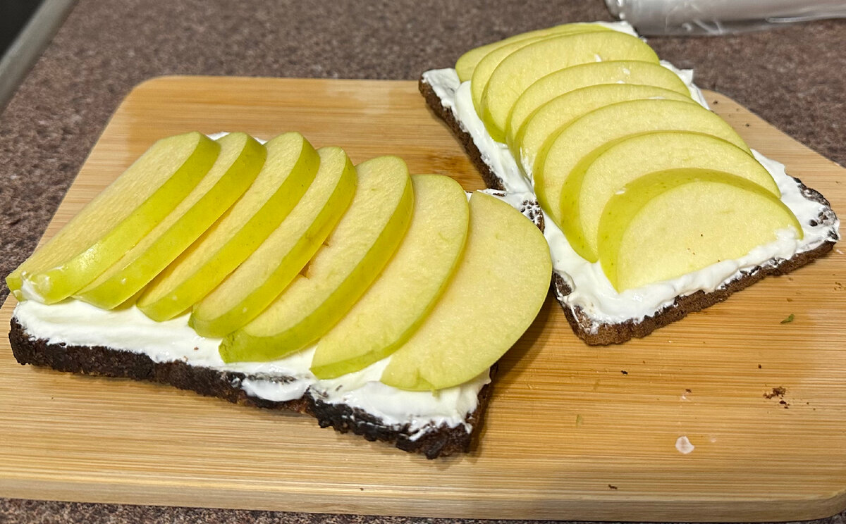 Для приготовления этого завтрака нам понадобятся всего 3 ингредиента и 5 минут вашего времени Нам понадобятся: Хлеб поджариваем на сковороде или же в тостере, до хрустящей корочки Яблочко делим напополам и нарезаем небольшими кусочками, творог нужно немного перемешать в упаковке Творог равномерно распределяем на наших тостах (половина упаковки на один тост), сверху красиво выкладываем наше яблочко Вот и все, наш вкусный, быстрый, а главное полезный завтрак готов 🍞 Всем приятного аппетита и хорошего дня✨