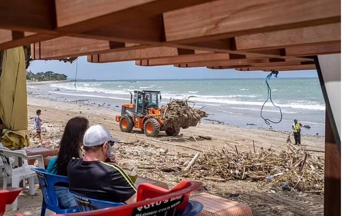 Вот честно, тем кто еще собирается на Бали - статья точно не понравится. А картина в декабре-январе на курорте одна и та же. Лежишь, смотришь на воду, на небо, чуть опустишь взгляд на землю - мама дорогая!!! Трактор, уборка, где я? В сезон дождей с октября по март тонны бутылок с водой, пищевых упаковок, соломинок, столовых приборов и пакетов, смытые в море и реки, ежедневно переносятся океанскими течениями и выбрасываются на балийские пляжи Кута, Семиньяк, Легиан и Джимбаран. В декабре и январе все восточное побережье Бали завалено отходами, небольшая группа добровольцев ведет безуспешную борьбу за чистоту. Тракторы, вывозящие мусор с пляжей Бали — обычное явление. В декабре было собрано 600 тонн. Только в один рождественский день 25 тракторов были отправлены на пляж Куты, чтобы очистить его.